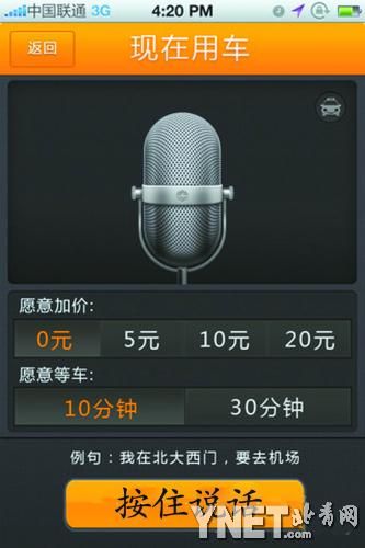 同时,针对每次呼叫,“嘀嘀打车”都会向叫车人提出两个问题:一问是否愿意加价打车,选项中分别设有0元、5元、10元、20元四个加价档次可供选择。二问愿意等车多久,分别有10分钟和30分钟可选。选择的前提都是建立在“顾客自愿”的基础上。